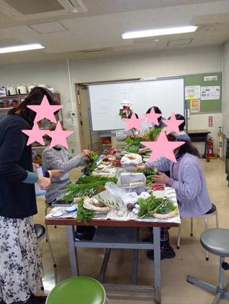 こんな感じかしら、これもいいわね、 みなさん思い思いのリース制作をされていました☆